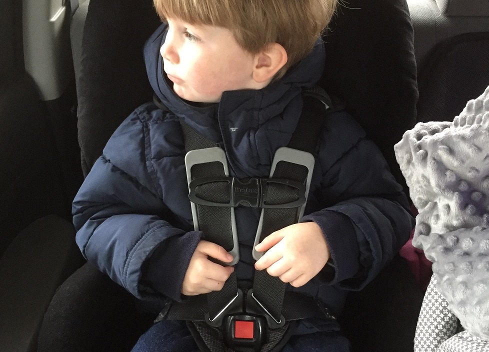 Who doesn’t put their kid in a big warm coat during cold winter weather? No one, that’s who. But as it turns out many times winter coats and car seats don’t mix. Why? The volume of the coat can interfere with how tight the straps fit, and therefore how safe and functional the car seat is. Test yours by tightening the straps over baby’s coat and then (without loosening them), take baby out, take the coat off, and put baby back in. Can you pinch any excess strap? If yes, then the coat is interfering with the car seat’s safety and instead you should put the coat on backwards over the harness (arms in the holes, coat on like a Snuggie) or simply use a big warm blanket instead and save the coat for outside.