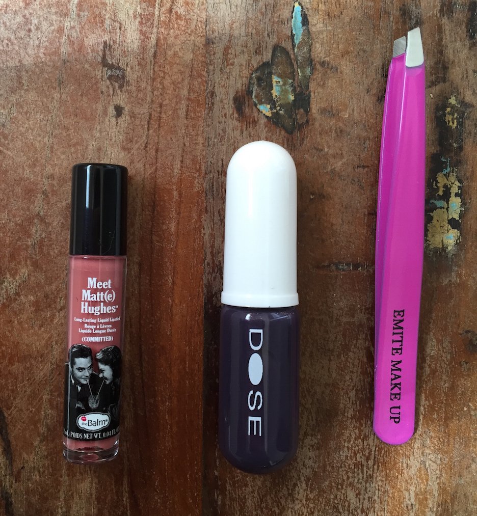 Just a fun photo to show that these three items are all super tiny, in a cute way. The tweezer is typical tweezer size — look how much smaller the other two are! (Although I apparently didn’t line their bottoms up very well.)