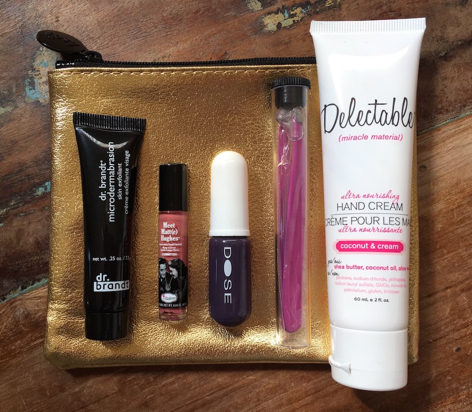November Alter Ego makeup bag: Nice, but not my favorite. Mostly because I am not a particular fan of gold or black patent leather. But it’s classic and simple, and also a more square shape than previous bags, which is a nice change.